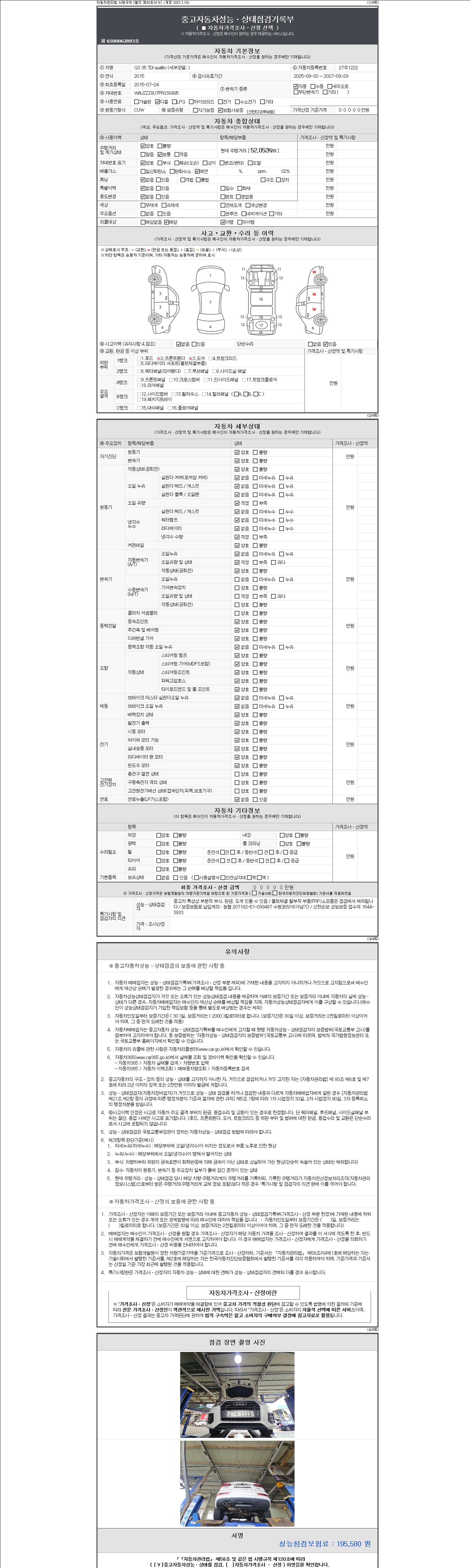 - 2. 차량 등록증이나 성능점검지 등을 상담자에게 요청및 확인하시고 사전에 미리 점검 하시기를 권유드립니다.