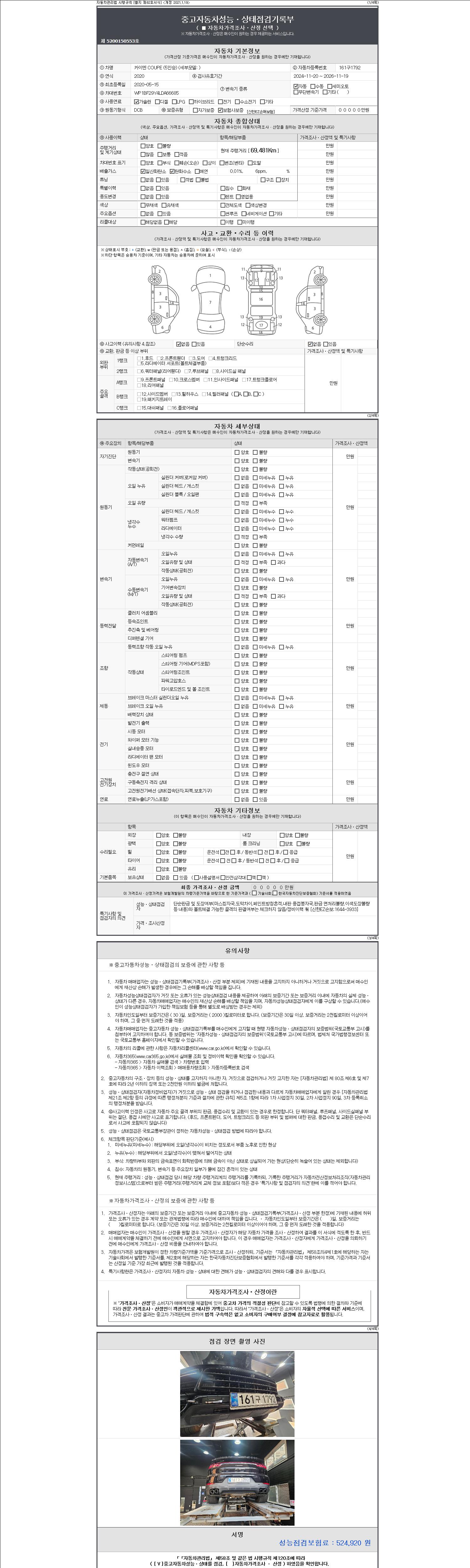 - 사고유무 : 성능기록부 참조