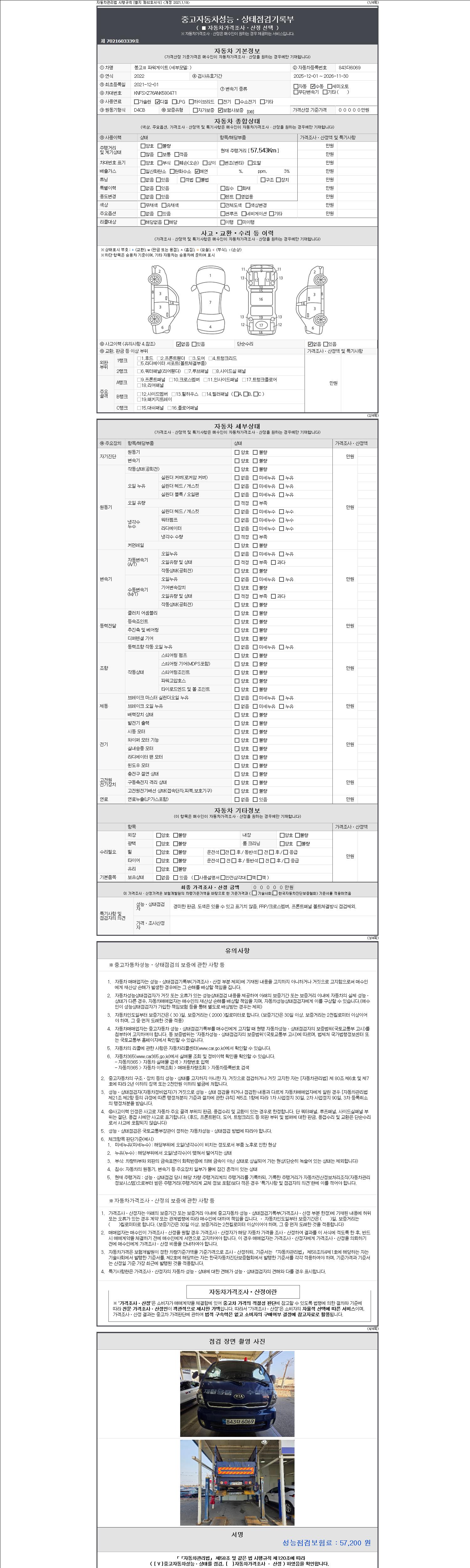 | 주행거리 | 57,543 km | 차량번호 | 843더6069 | 사고유무 | 성능기록부 참조 | 제시번호 | 제 2147483647 호 |