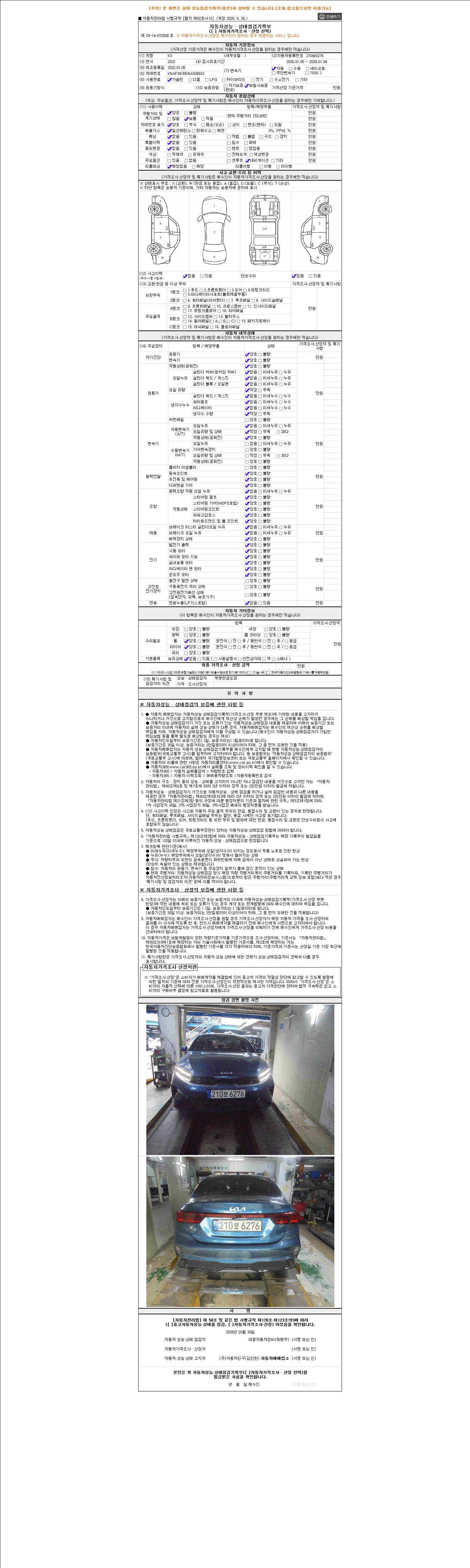 - 2. 차량 등록증이나 성능점검지 등을 상담자에게 요청및 확인하시고 사전에 미리 점검 하시기를 권유드립니다.