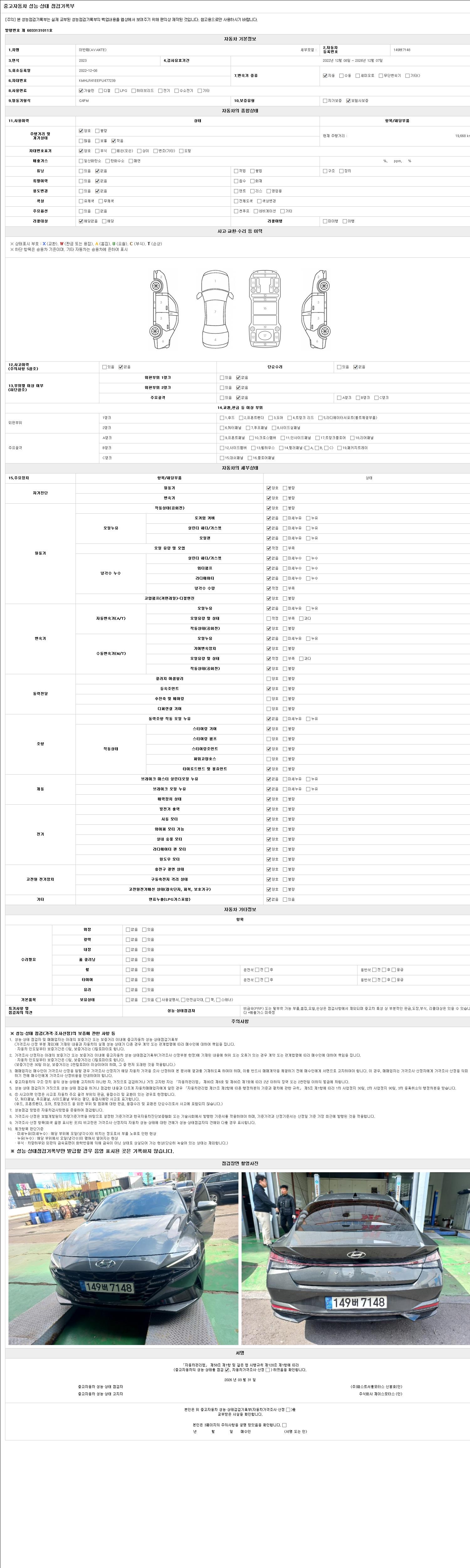 • 2. 차량 등록증이나 성능점검지 등을 상담자에게 요청및 확인하시고 사전에 미리 점검 하시기를 권유드립니다.