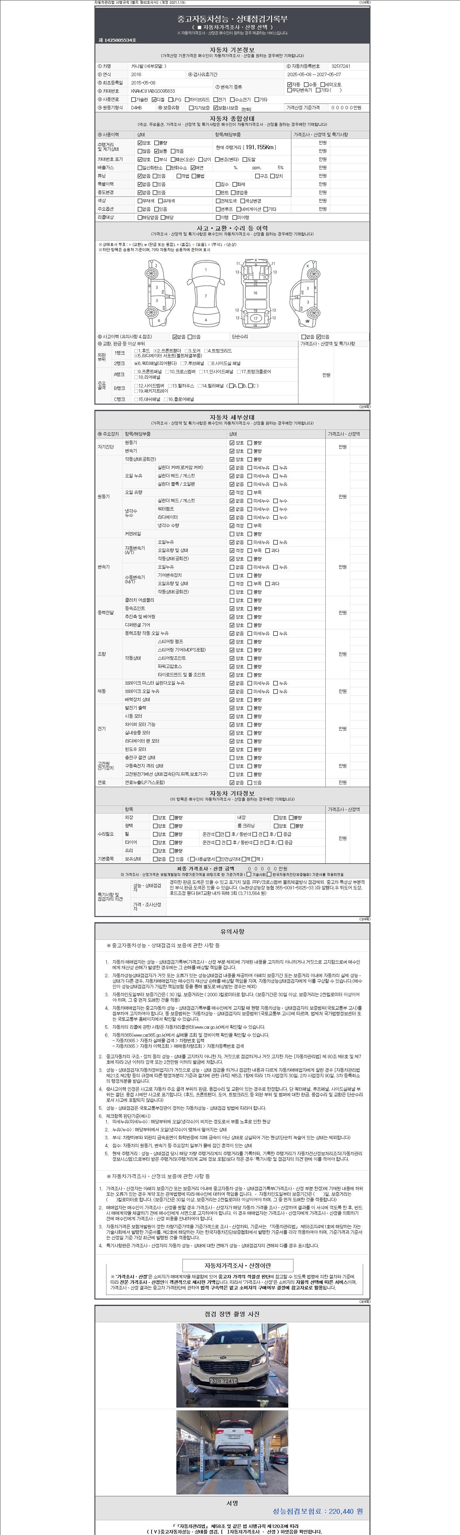 | 주행거리 | 191,155 km | 차량번호 | 32더7241 | 사고유무 | 성능기록부 참조 | 제시번호 | 제 2147483647 호 |