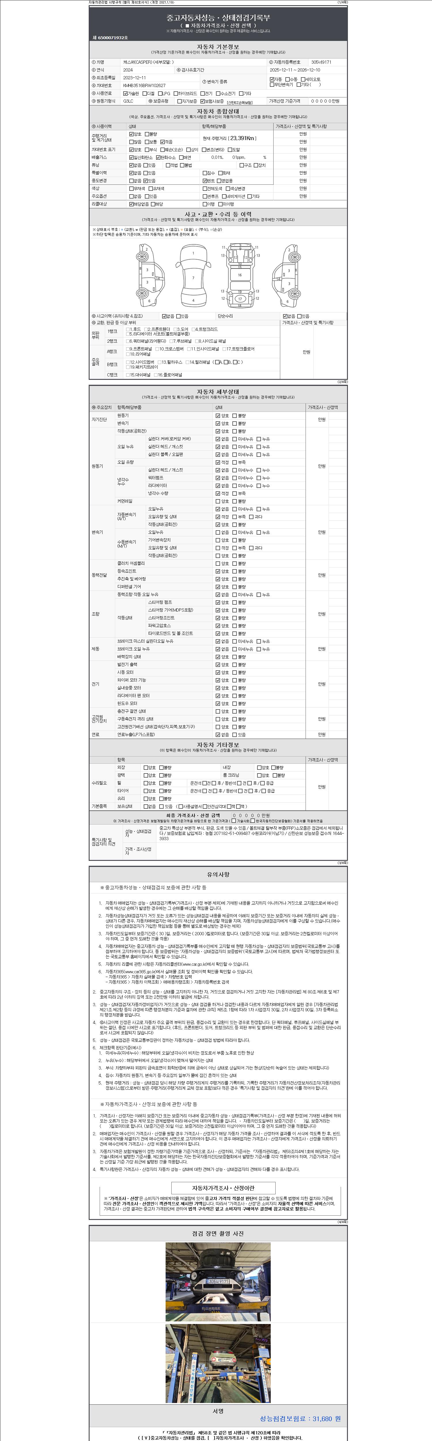 | 주행거리 | 23,390 km | 차량번호 | 305너9171 | 사고유무 | 성능기록부 참조 | 제시번호 | 제 2147483647 호 |