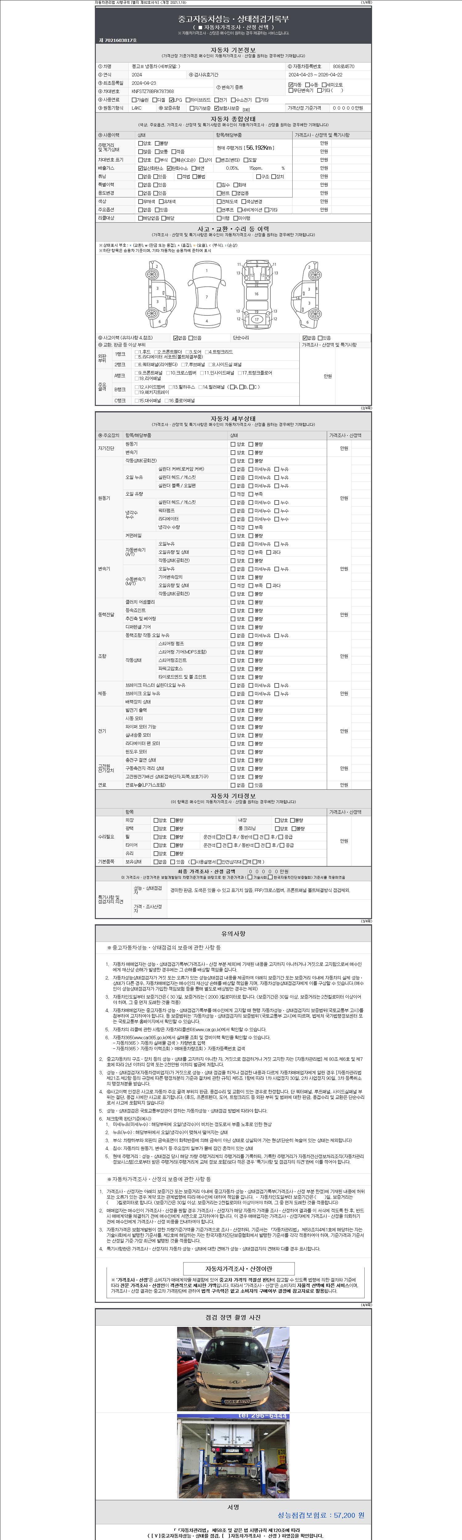 | 주행거리 | 56,192 km | 차량번호 | 808로4570 | 사고유무 | 성능기록부 참조 | 제시번호 | 제 2147483647 호 |