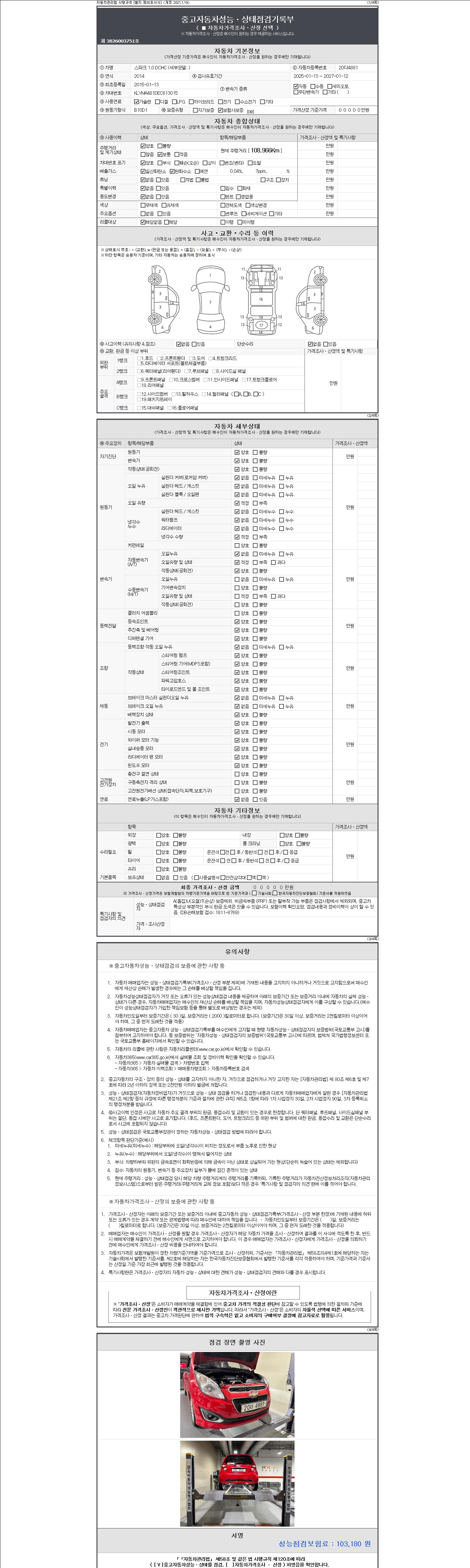 - 2. 차량 등록증이나 성능점검지 등을 상담자에게 요청및 확인하시고 사전에 미리 점검 하시기를 권유드립니다.