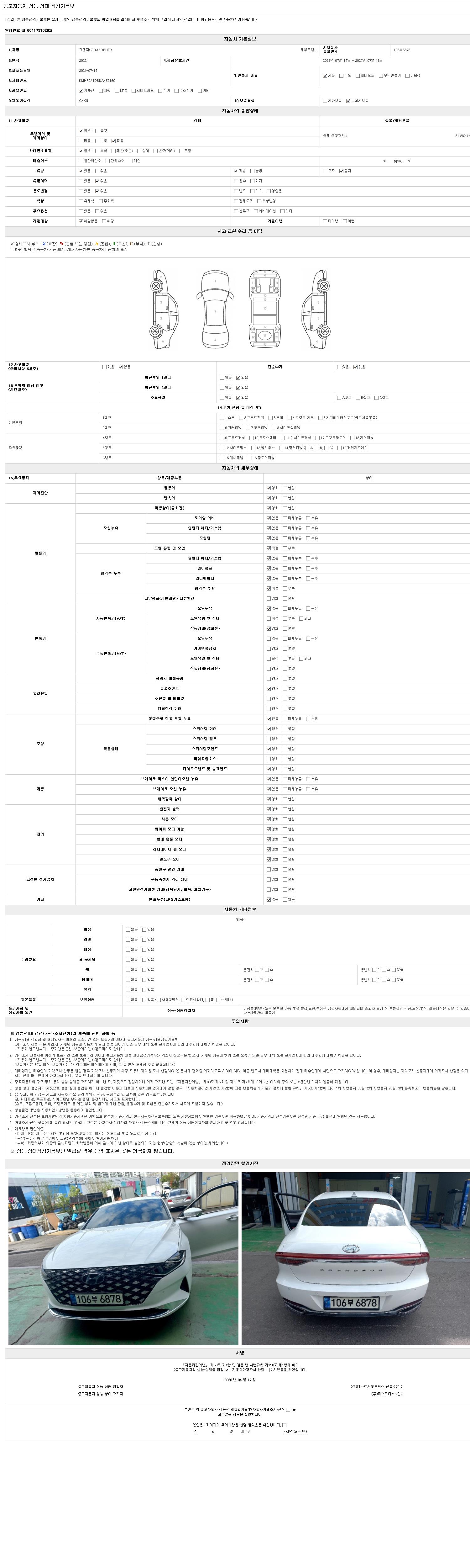 | 주행거리 | 81,282 km | 차량번호 | 106부6878 | 사고유무 | 성능기록부 참조 | 제시번호 | 제 2026012638 호 |