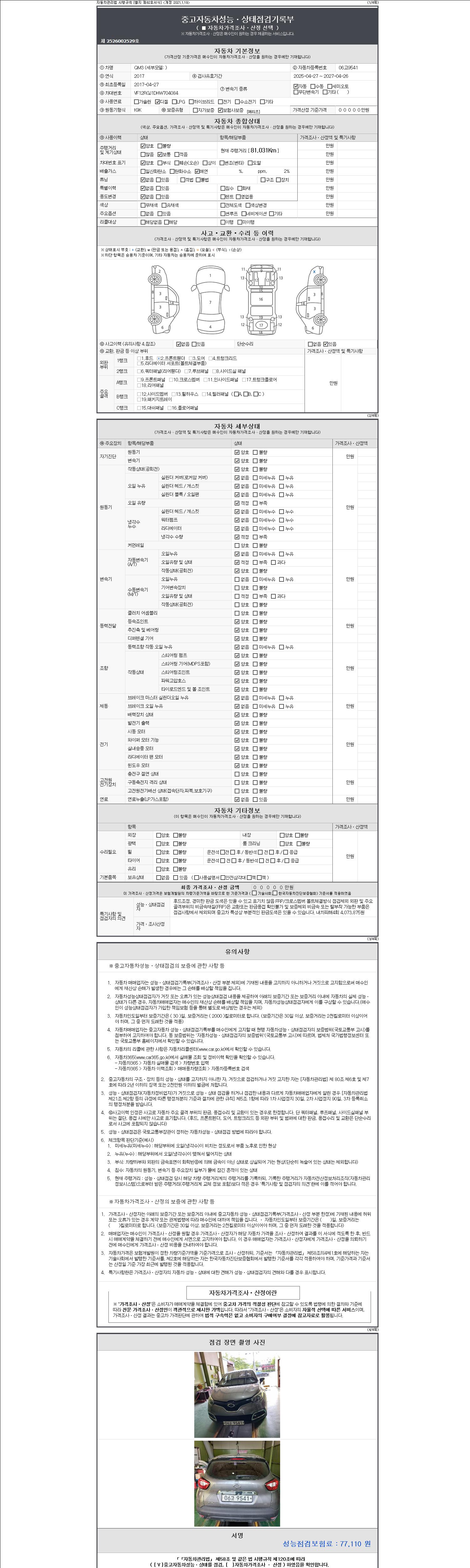• 2. 차량 등록증이나 성능점검지 등을 상담자에게 요청및 확인하시고 사전에 미리 점검 하시기를 권유드립니다.