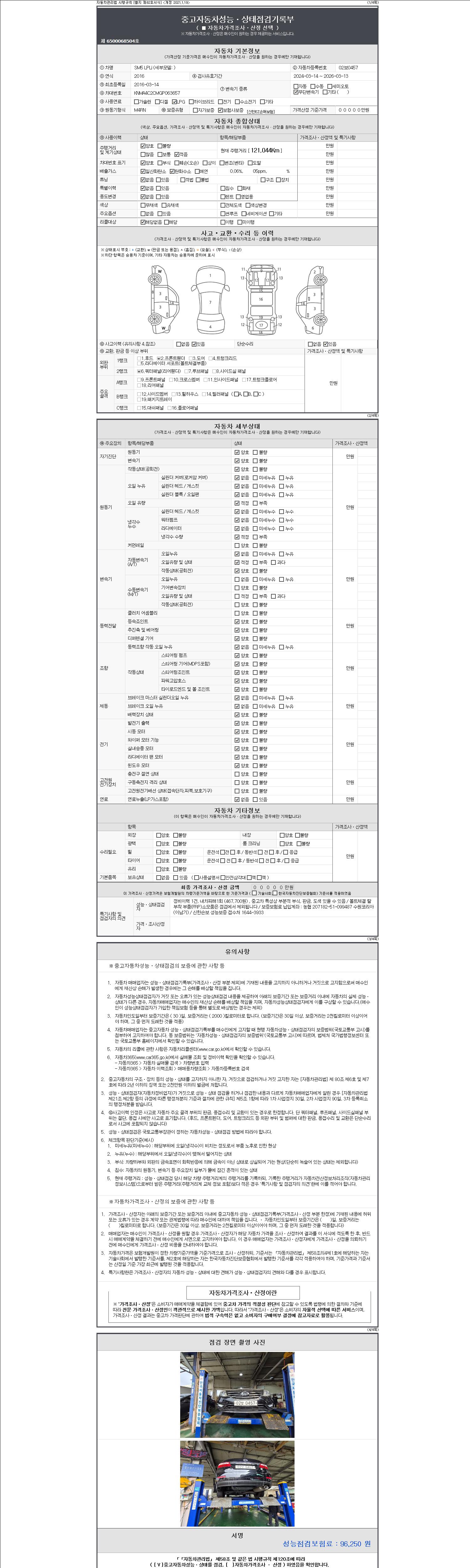 -중고자동차 매매업자를 통해 차량을 구입하실 경우 반드시 "중고자동차 성능, 상태점검 기록부"를 교뷰 받으셔야 하며, 매매업자는 반드시 의무 교부 하여야 압니다.