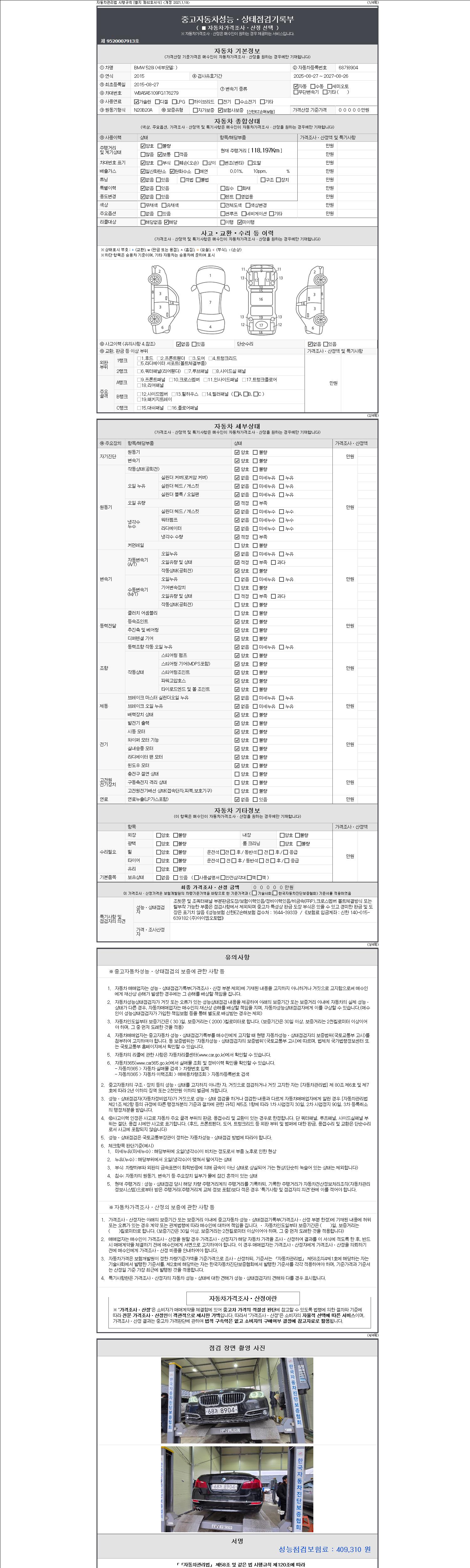 -중고자동차 매매업자를 통해 차량을 구입하실 경우 반드시 "중고자동차 성능, 상태점검 기록부"를 교뷰 받으셔야 하며, 매매업자는 반드시 의무 교부 하여야 압니다.