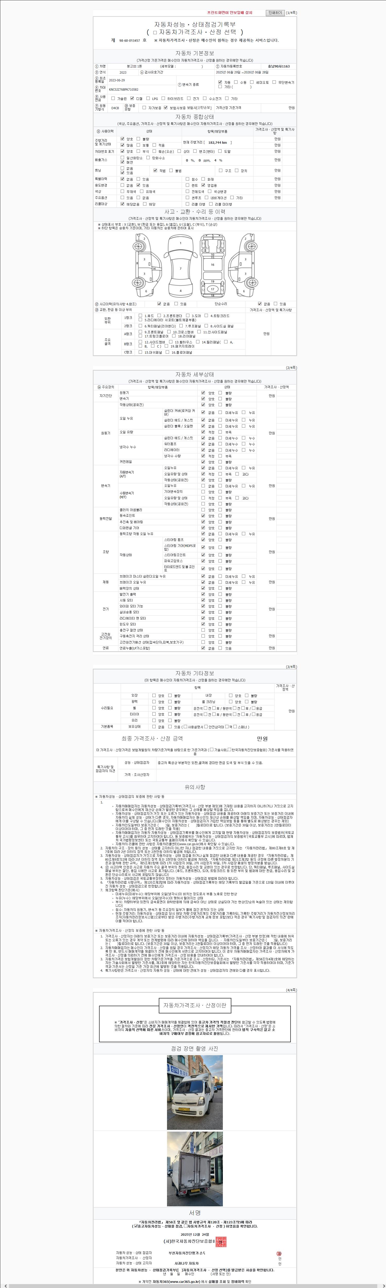 - 2. 차량 등록증이나 성능점검지 등을 상담자에게 요청및 확인하시고 사전에 미리 점검 하시기를 권유드립니다.