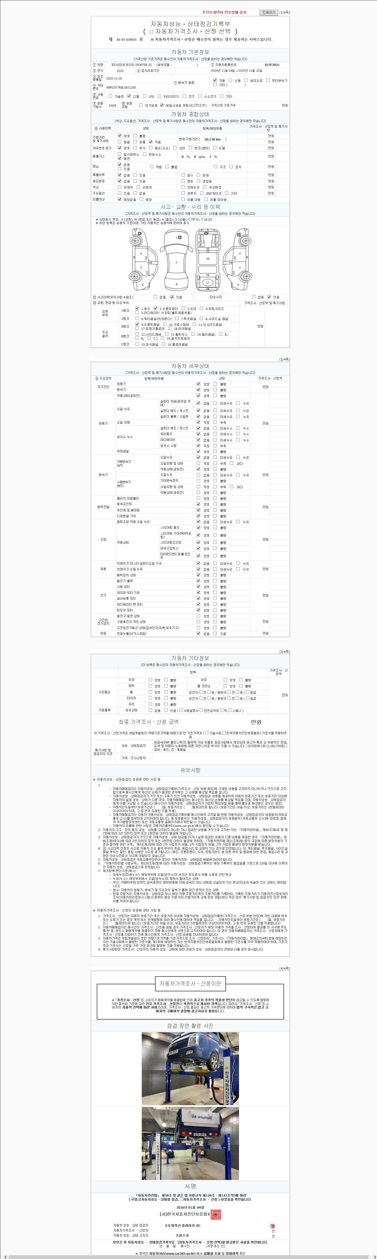 - 사고유무 : 성능기록부 참조