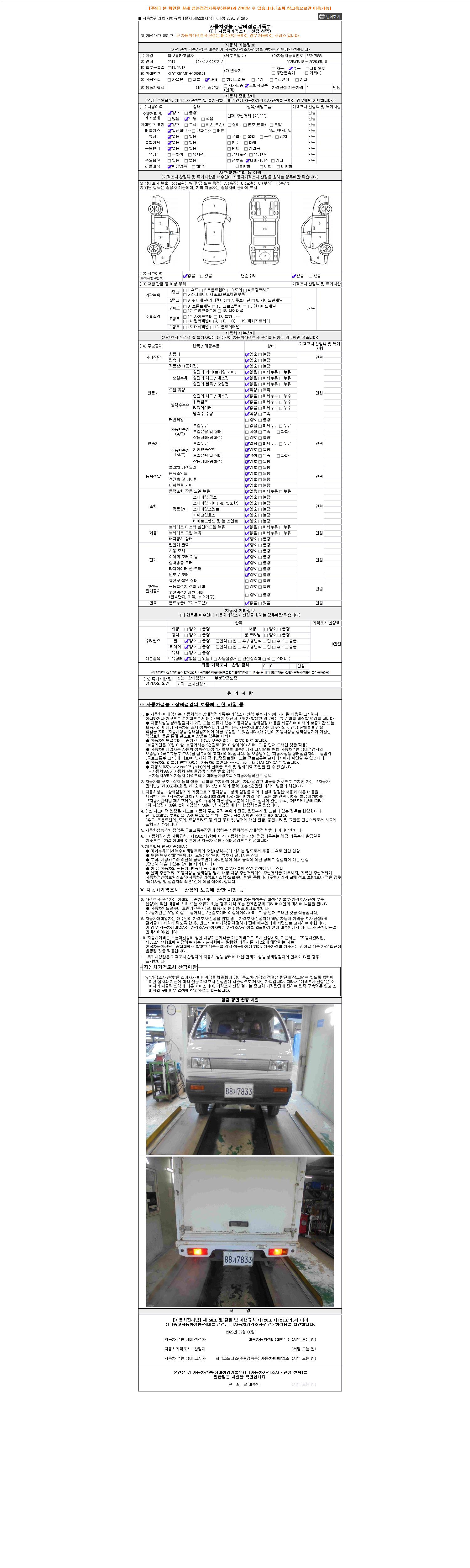 | 주행거리 | 73,079 km | 차량번호 | 88거7833 | 사고유무 | 성능기록부 참조 | 제시번호 | 제 2026007173 호 |
