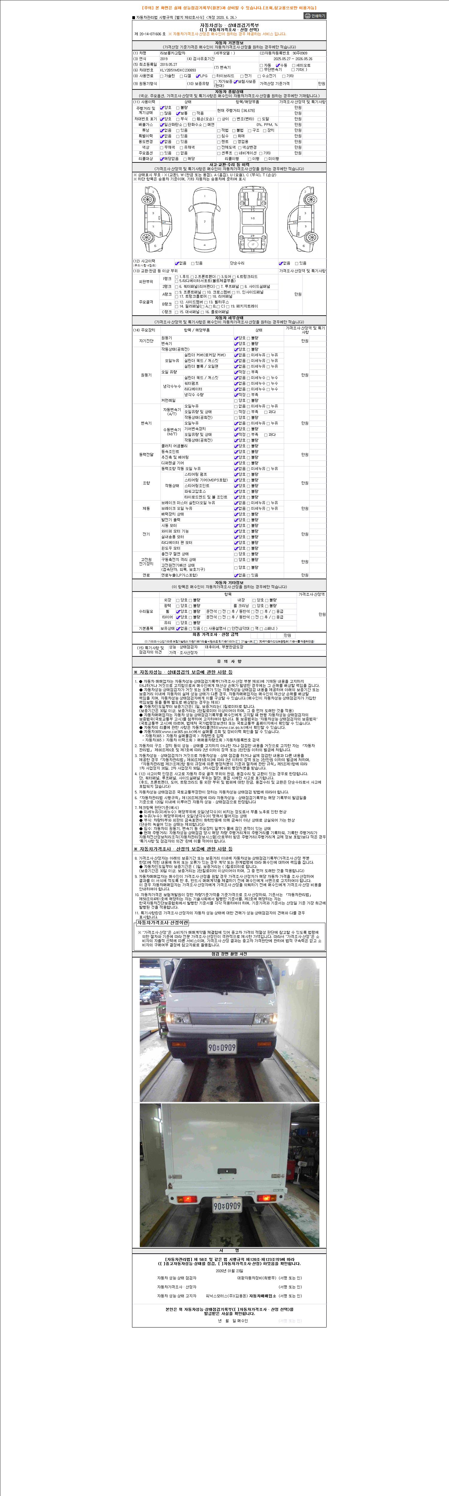 - 2. 차량 등록증이나 성능점검지 등을 상담자에게 요청및 확인하시고 사전에 미리 점검 하시기를 권유드립니다.