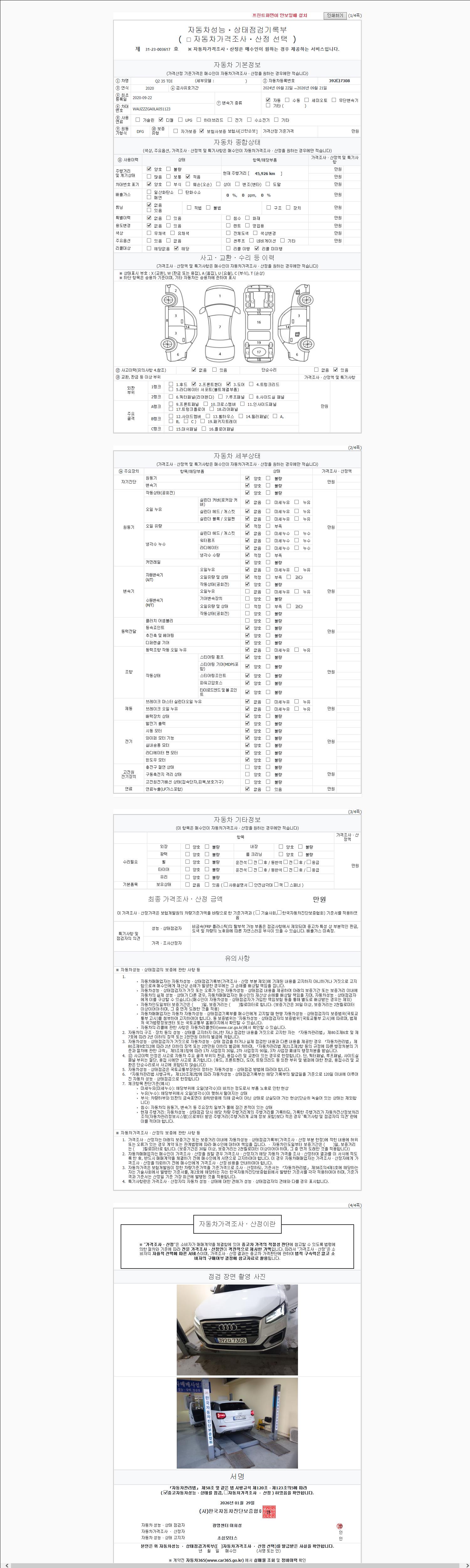 - 2. 차량 등록증이나 성능점검지 등을 상담자에게 요청및 확인하시고 사전에 미리 점검 하시기를 권유드립니다.