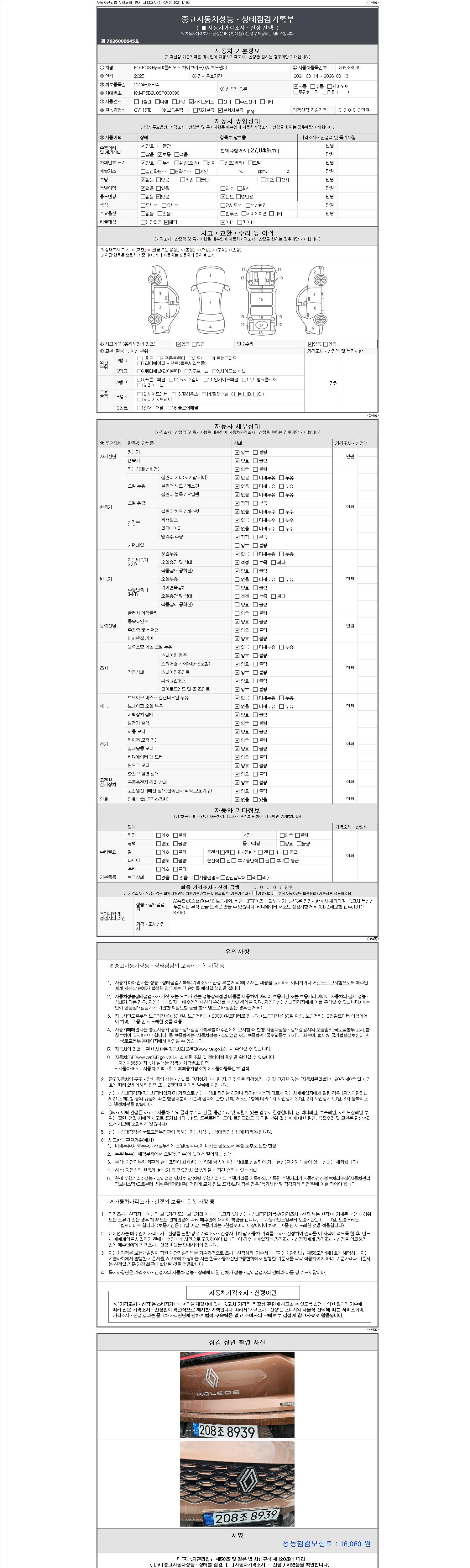 | 주행거리 | 27,848 km | 차량번호 | 208조8939 | 사고유무 | 성능기록부 참조 | 제시번호 | 제 2147483647 호 |