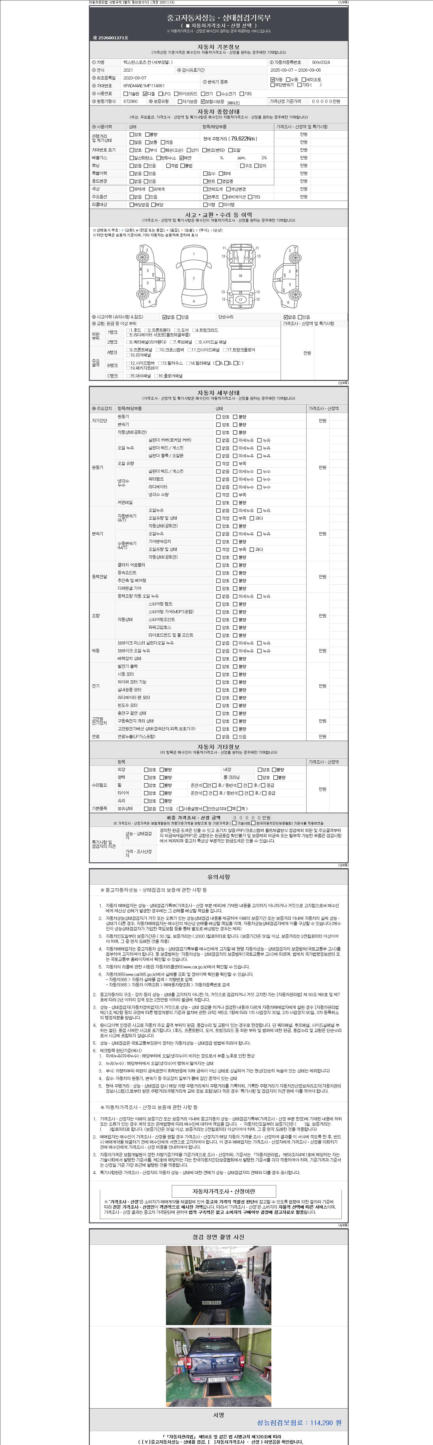 | 주행거리 | 79,622 km | 차량번호 | 90누0324 | 사고유무 | 성능기록부 참조 | 제시번호 | 제 2147483647 호 |