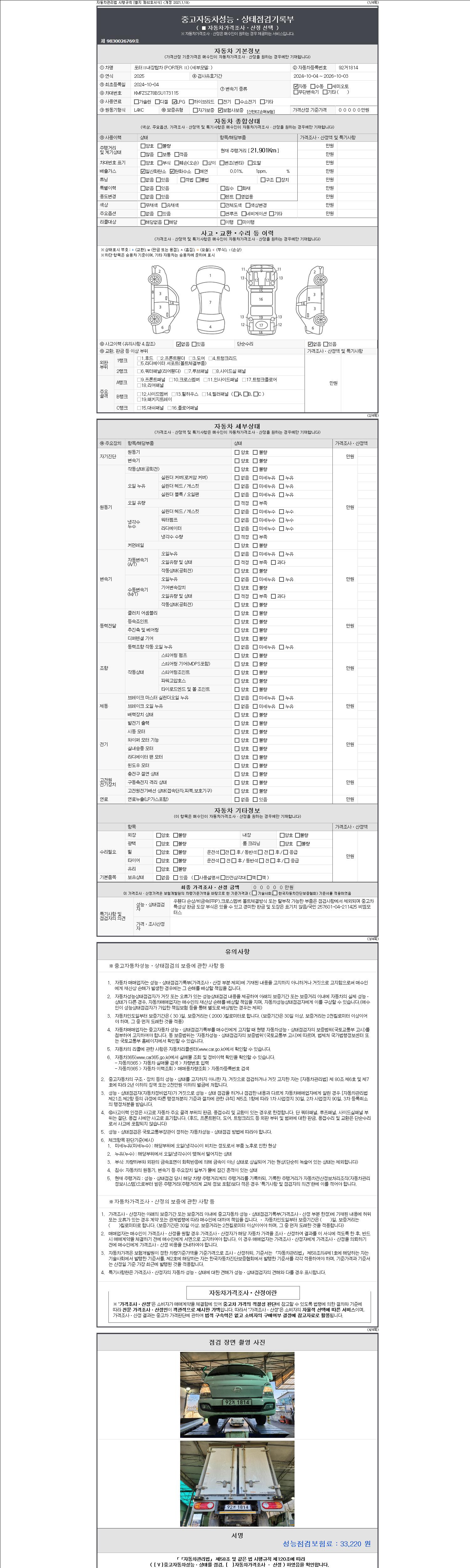 | 주행거리 | 21,901 km | 차량번호 | 92거1814 | 사고유무 | 성능기록부 참조 | 제시번호 | 제 2147483647 호 |
