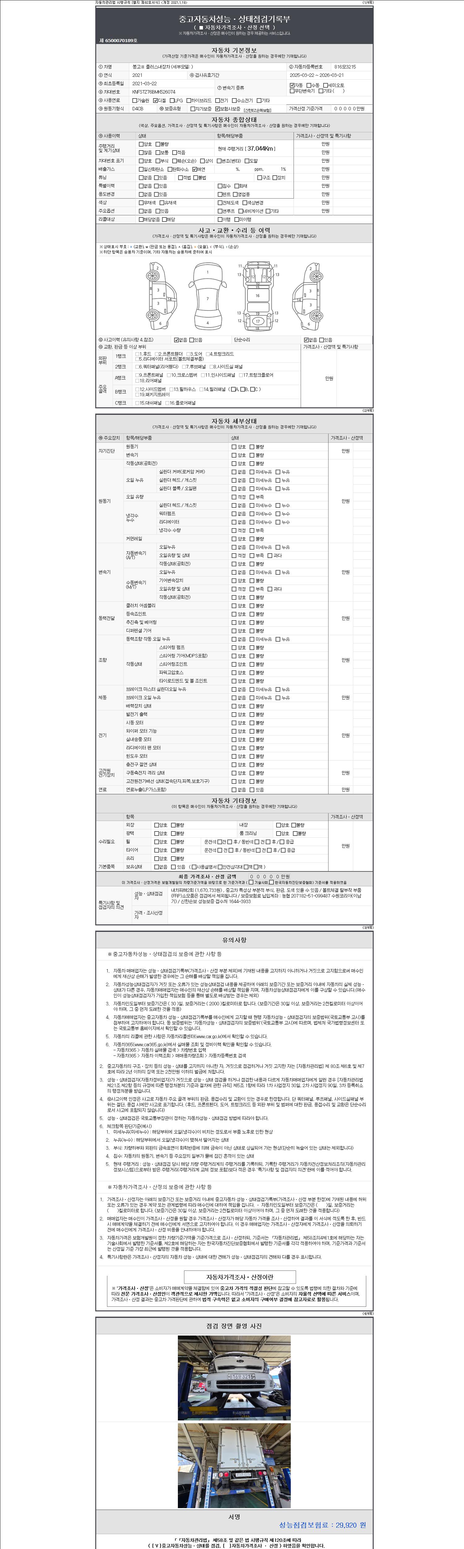 -중고자동차 매매업자를 통해 차량을 구입하실 경우 반드시 "중고자동차 성능, 상태점검 기록부"를 교뷰 받으셔야 하며, 매매업자는 반드시 의무 교부 하여야 압니다.