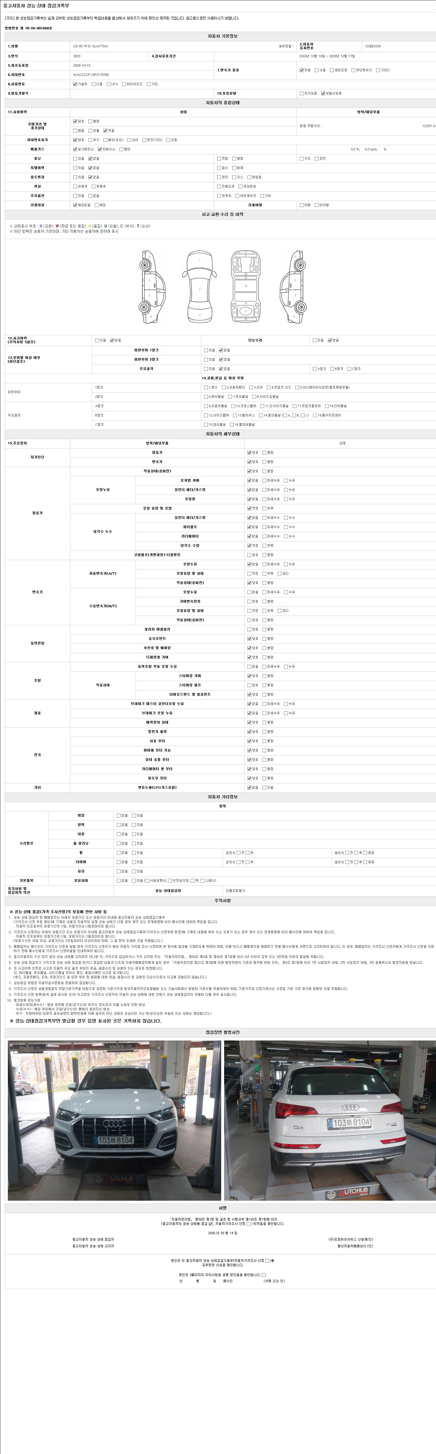- 2. 차량 등록증이나 성능점검지 등을 상담자에게 요청및 확인하시고 사전에 미리 점검 하시기를 권유드립니다.