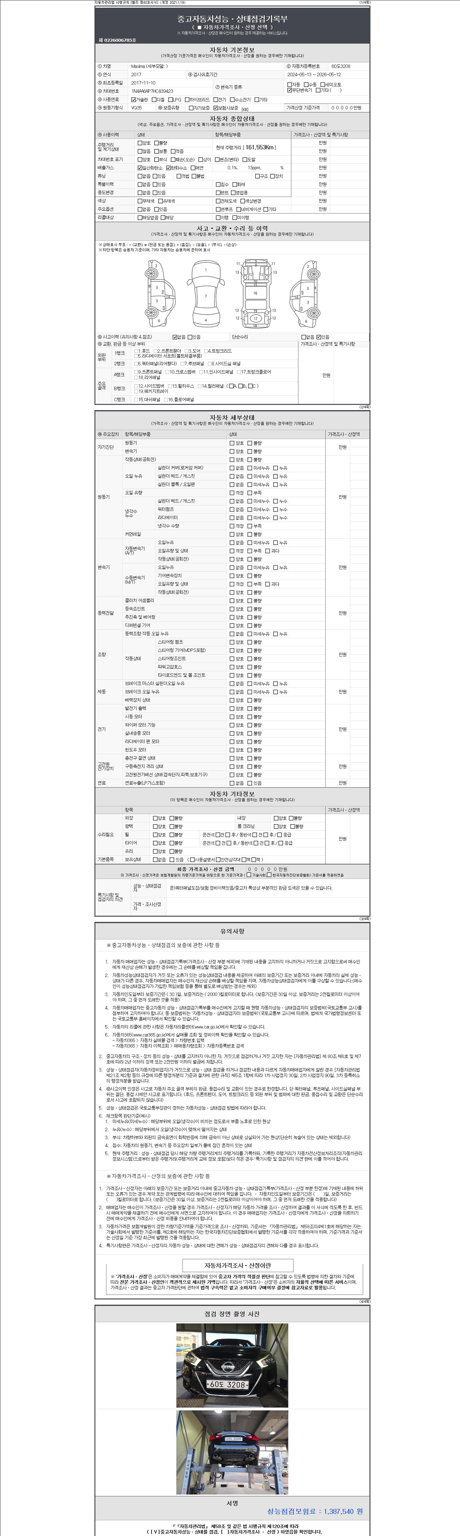 -중고자동차 매매업자를 통해 차량을 구입하실 경우 반드시 "중고자동차 성능, 상태점검 기록부"를 교뷰 받으셔야 하며, 매매업자는 반드시 의무 교부 하여야 압니다.