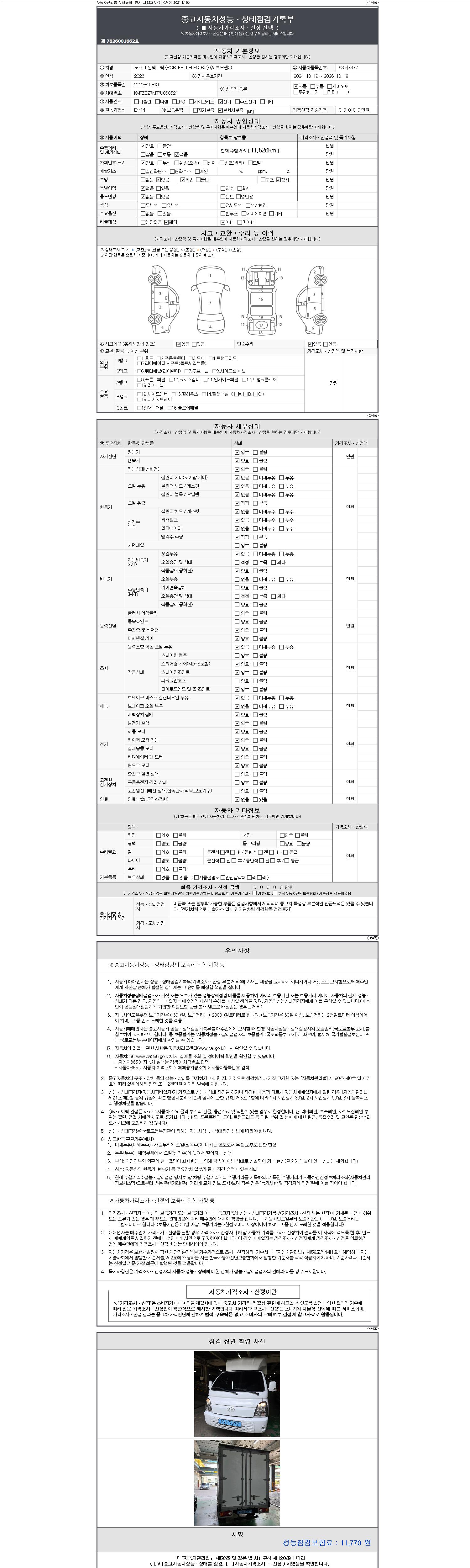 | 주행거리 | 11,526 km | 차량번호 | 93거7377 | 사고유무 | 성능기록부 참조 | 제시번호 | 제 2147483647 호 |