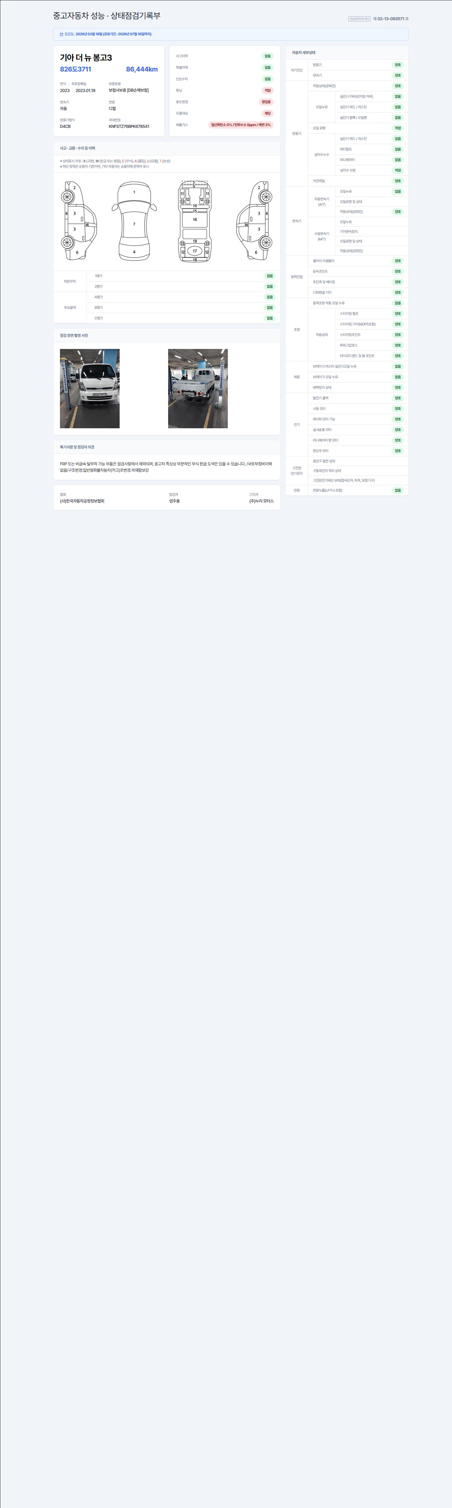 - 사고유무 : 성능기록부 참조