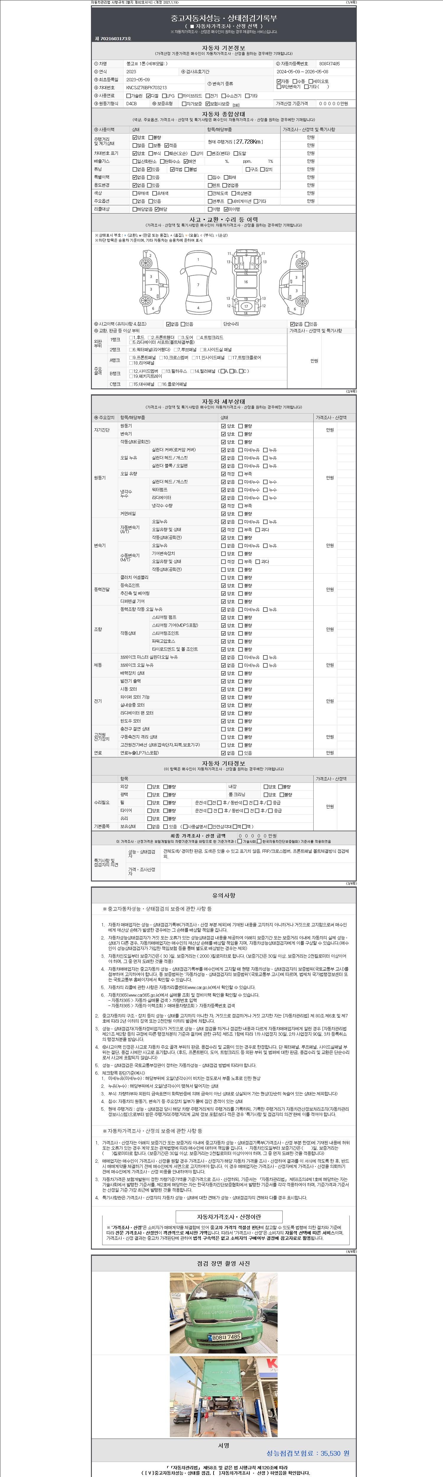 | 주행거리 | 27,728 km | 차량번호 | 808더7485 | 사고유무 | 성능기록부 참조 | 제시번호 | 제 2147483647 호 |