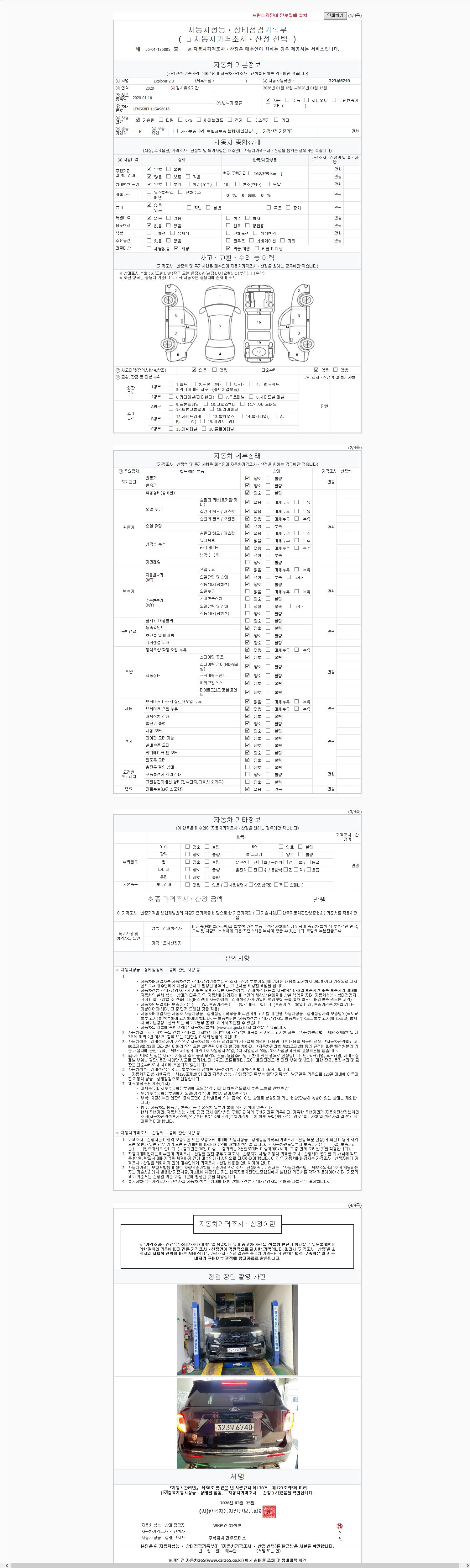 | 주행거리 | 162,799 km | 차량번호 | 323부6740 | 사고유무 | 성능기록부 참조 | 제시번호 | 제 2147483647 호 |