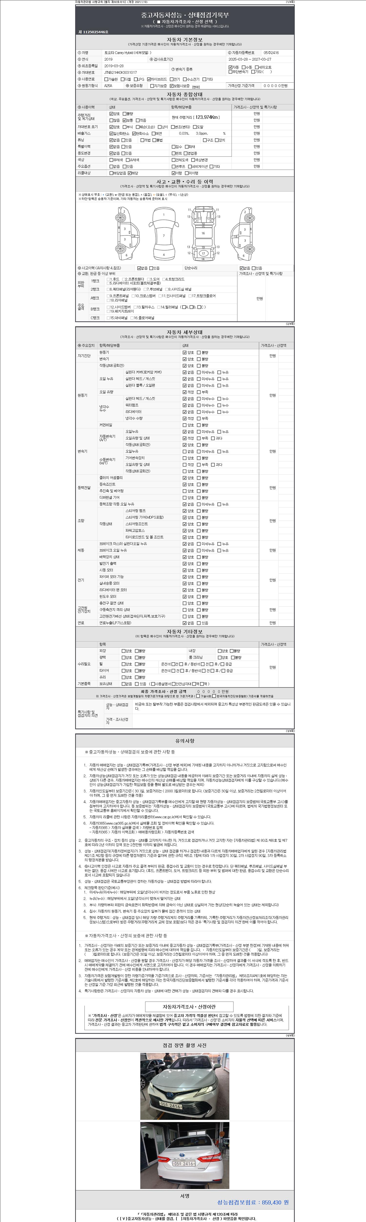 - 사고유무 : 성능기록부 참조