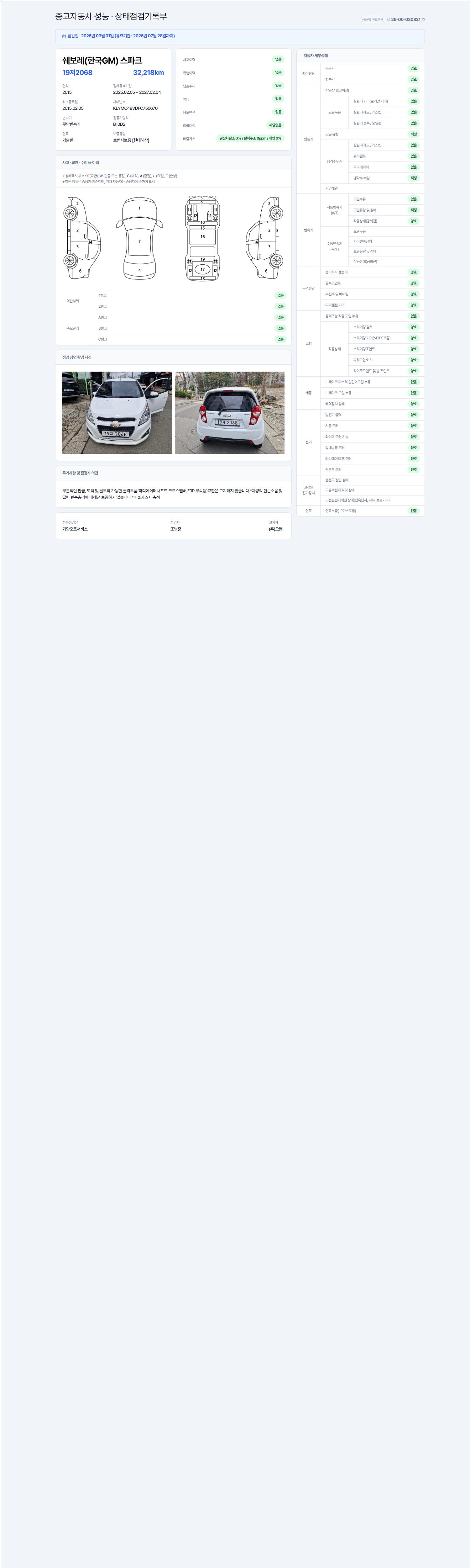 | 주행거리 | 32,218 km | 차량번호 | 19저2068 | 사고유무 | 성능기록부 참조 | 제시번호 | 제 2026041004 호 |