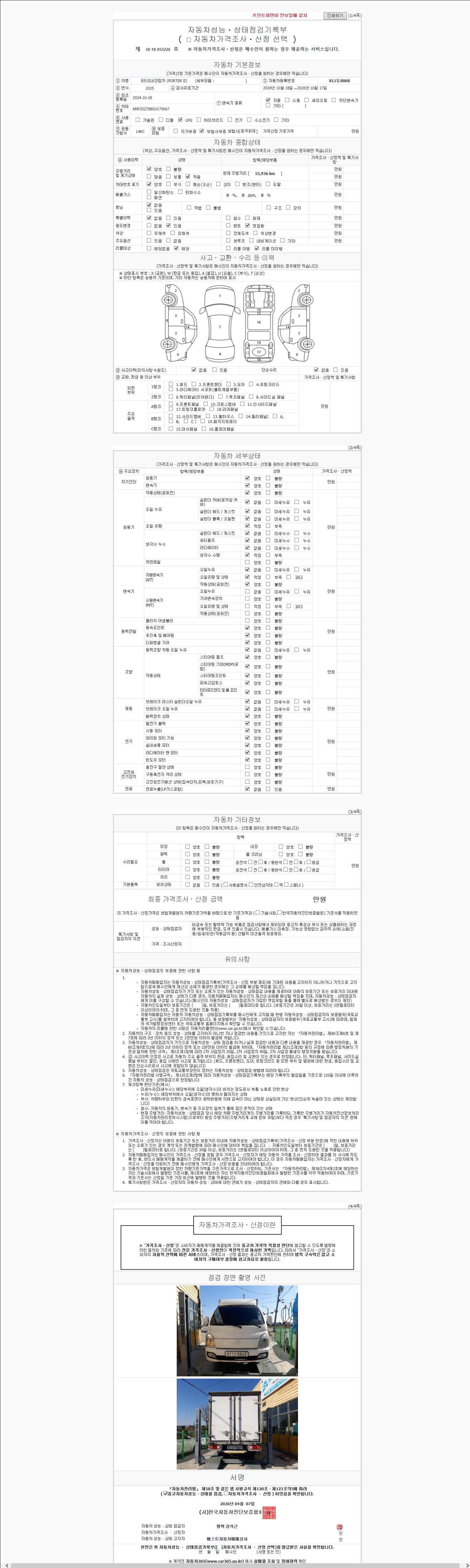 - 사고유무 : 성능기록부 참조