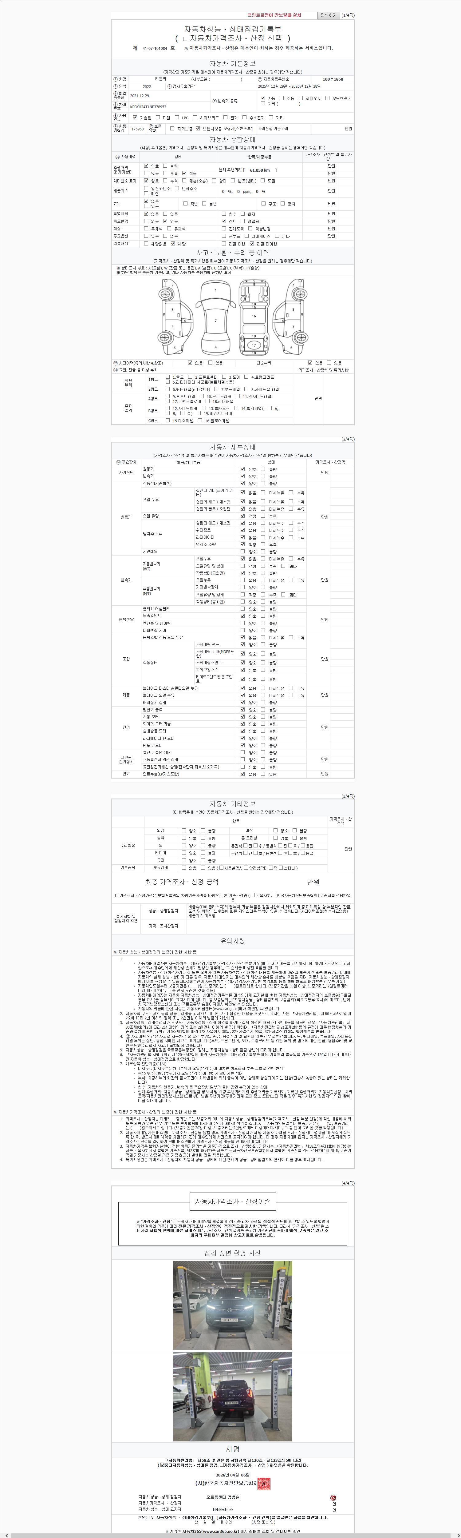 - 2. 차량 등록증이나 성능점검지 등을 상담자에게 요청및 확인하시고 사전에 미리 점검 하시기를 권유드립니다.