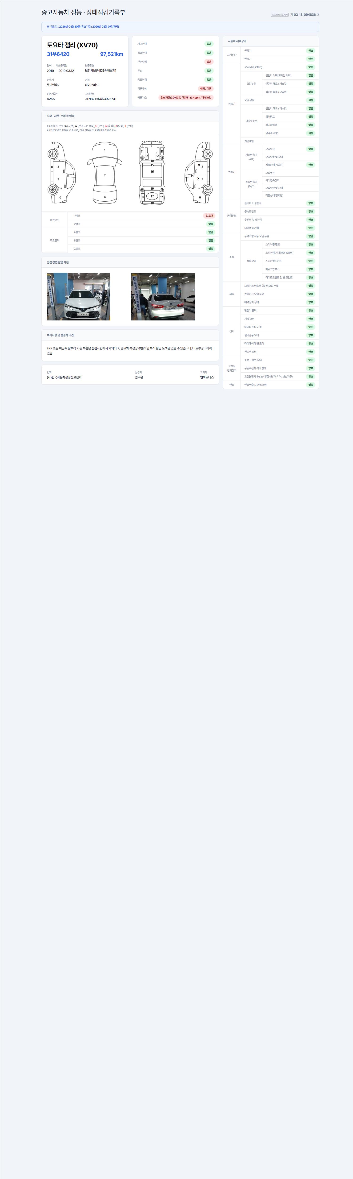 - 사고유무 : 성능기록부 참조