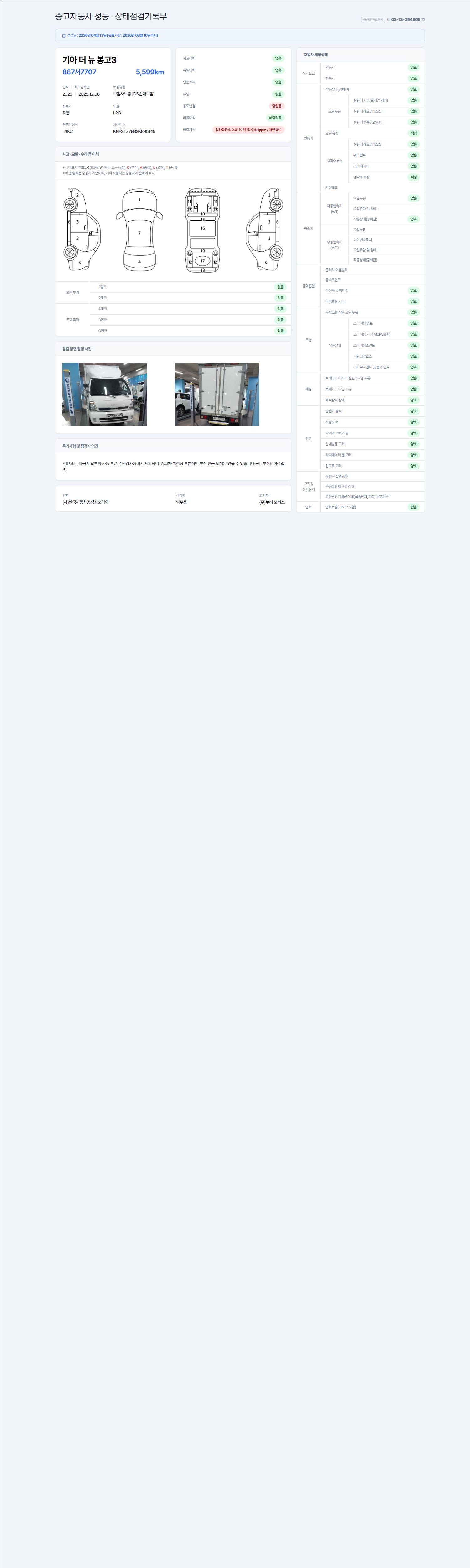 - 2. 차량 등록증이나 성능점검지 등을 상담자에게 요청및 확인하시고 사전에 미리 점검 하시기를 권유드립니다.