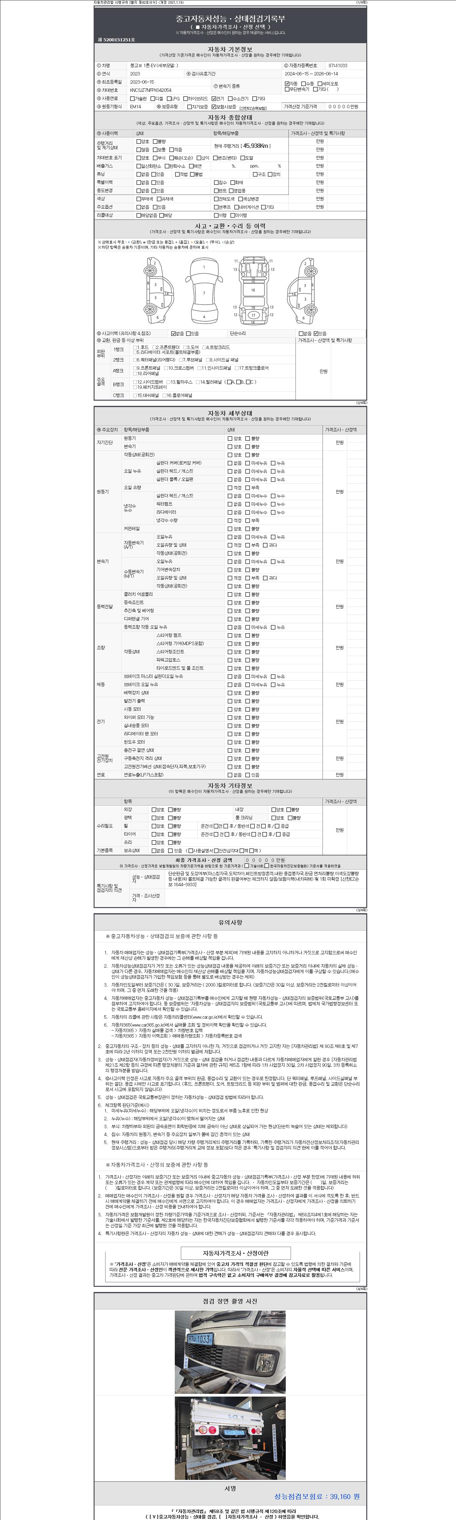 | 주행거리 | 45,938 km | 차량번호 | 87너1033 | 사고유무 | 성능기록부 참조 | 제시번호 | 제 2147483647 호 |