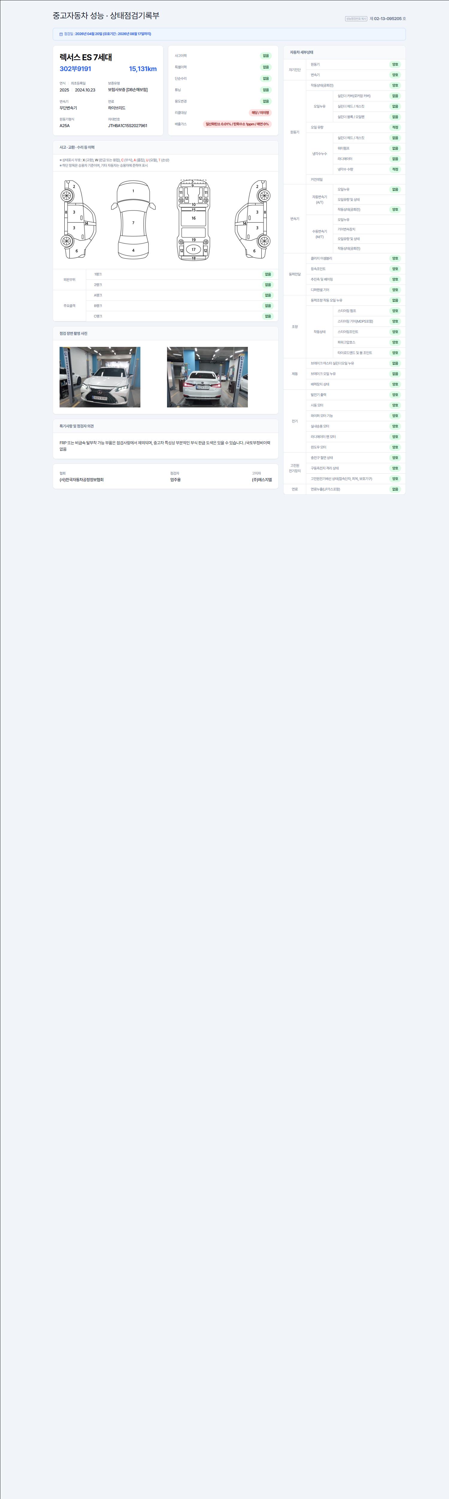 - 사고유무 : 성능기록부 참조