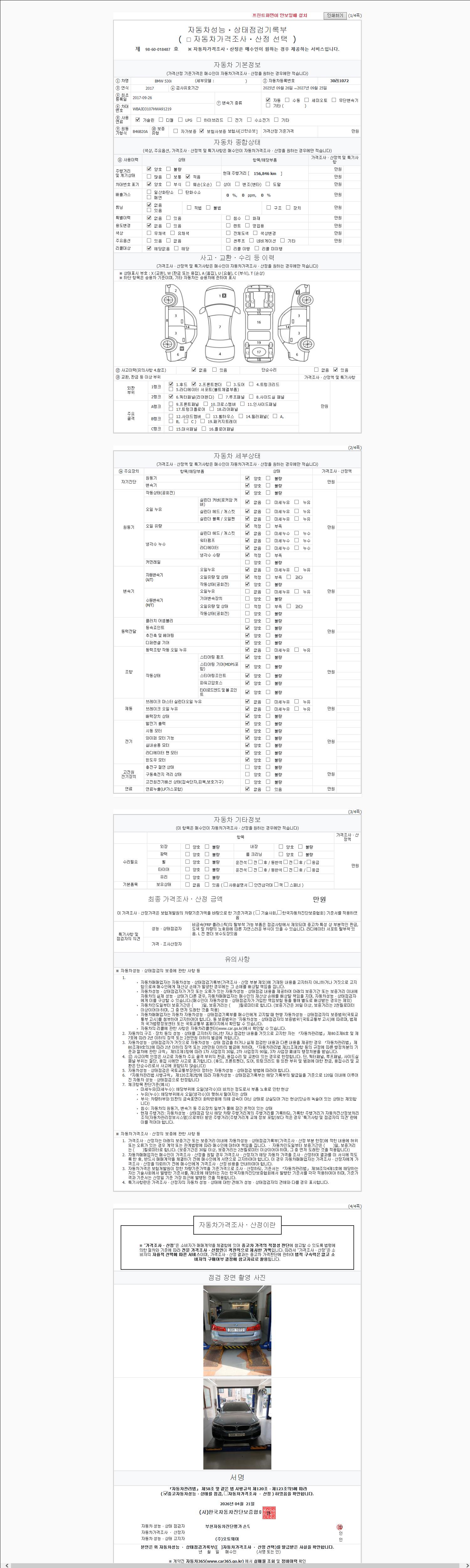 -중고자동차 매매업자를 통해 차량을 구입하실 경우 반드시 "중고자동차 성능, 상태점검 기록부"를 교뷰 받으셔야 하며, 매매업자는 반드시 의무 교부 하여야 압니다.