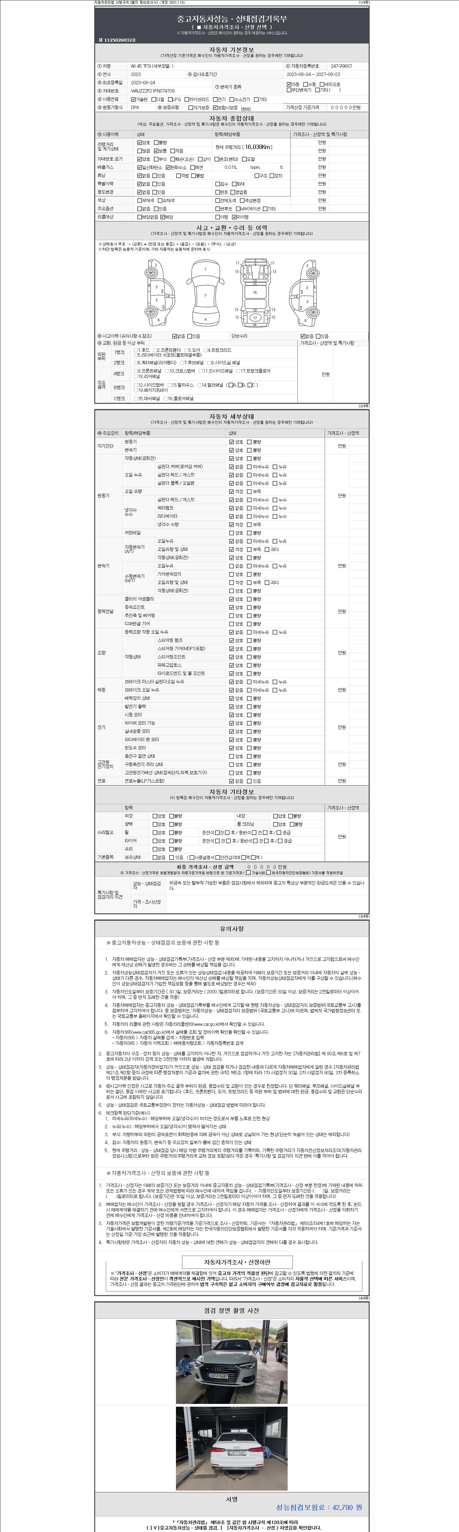 - 2. 차량 등록증이나 성능점검지 등을 상담자에게 요청및 확인하시고 사전에 미리 점검 하시기를 권유드립니다.