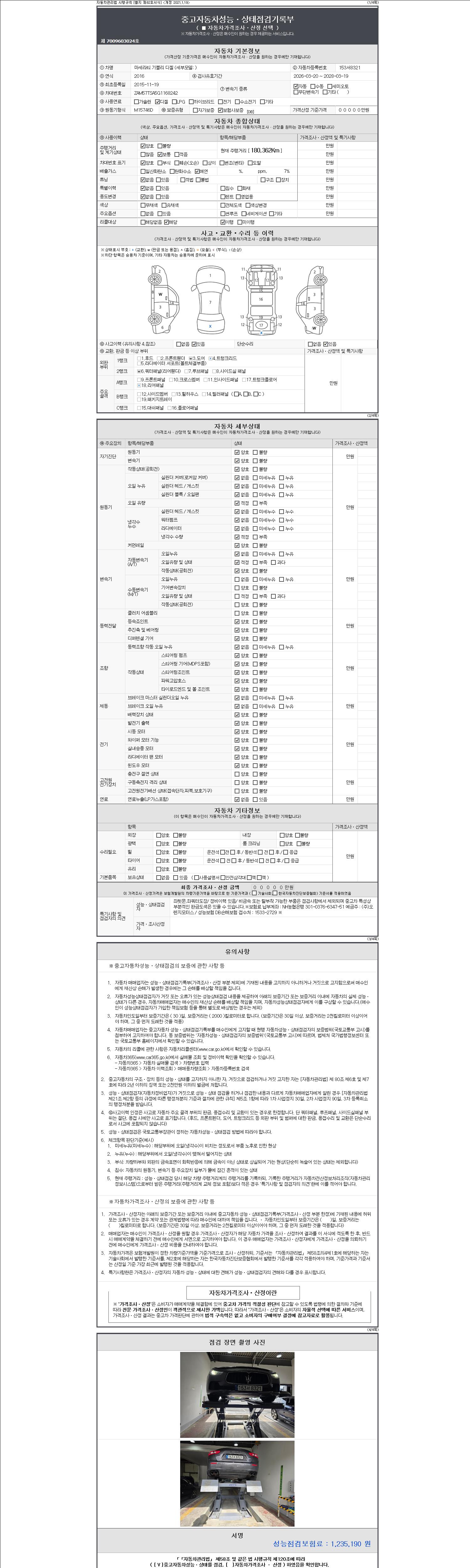 - 사고유무 : 성능기록부 참조