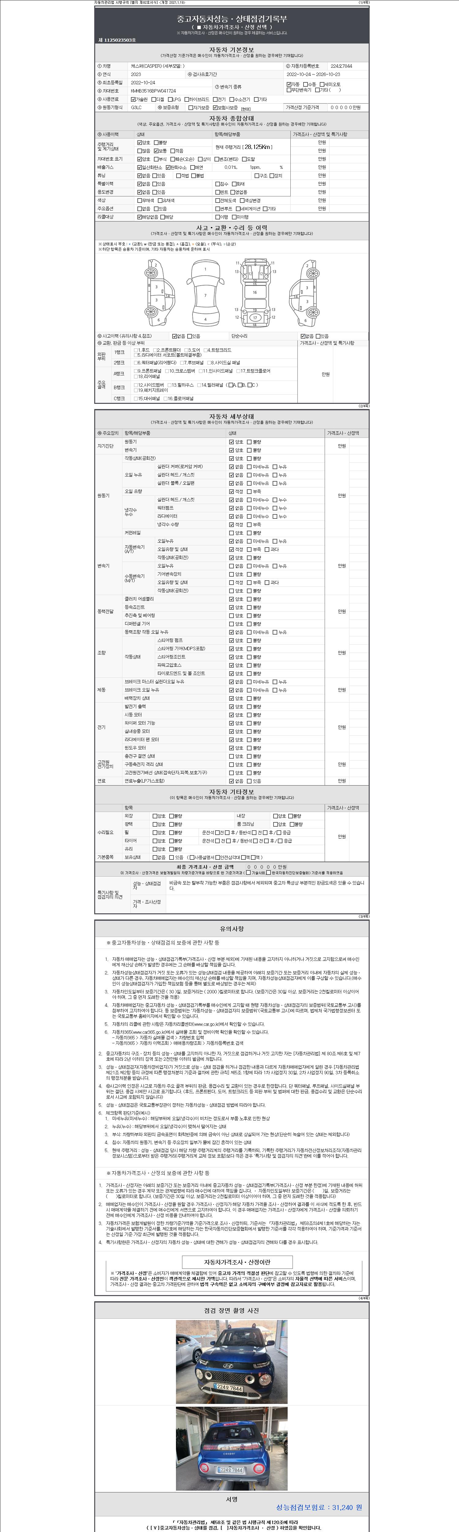 | 주행거리 | 28,125 km | 차량번호 | 224오7844 | 사고유무 | 성능기록부 참조 | 제시번호 | 제 2147483647 호 |