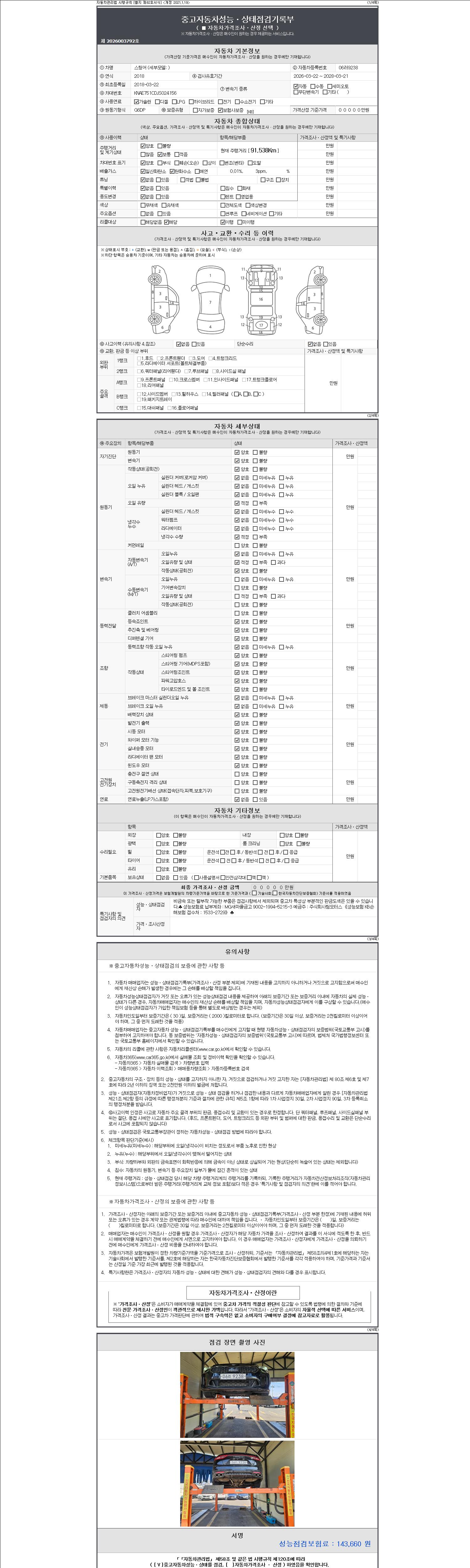 | 주행거리 | 91,538 km | 차량번호 | 06러9238 | 사고유무 | 성능기록부 참조 | 제시번호 | 제 2147483647 호 |