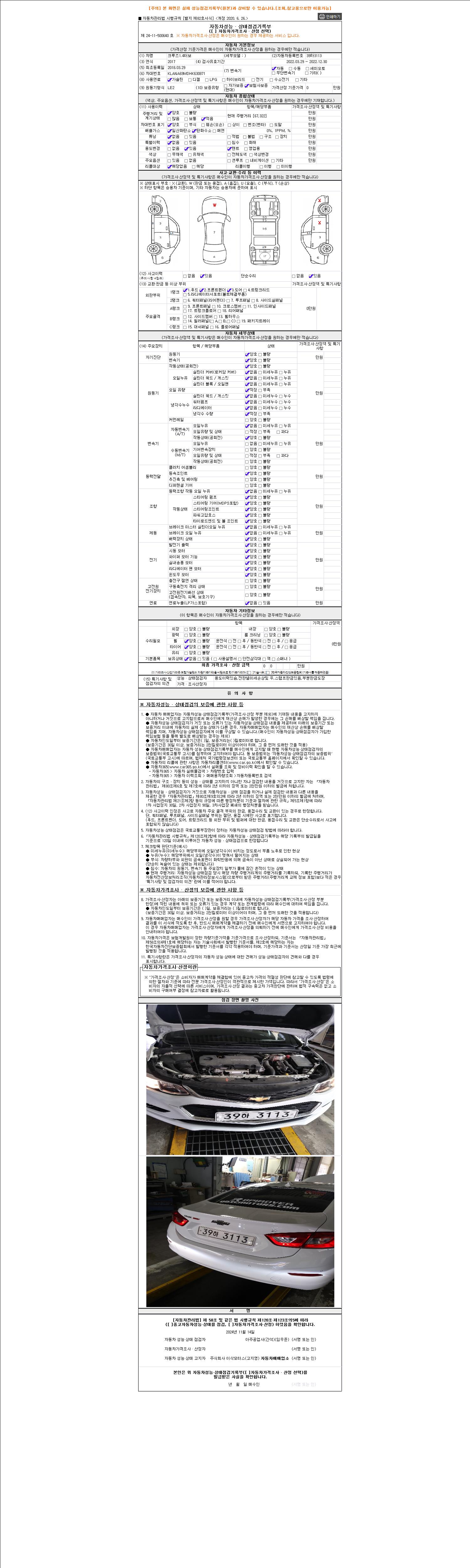 - 2. 차량 등록증이나 성능점검지 등을 상담자에게 요청및 확인하시고 사전에 미리 점검 하시기를 권유드립니다.