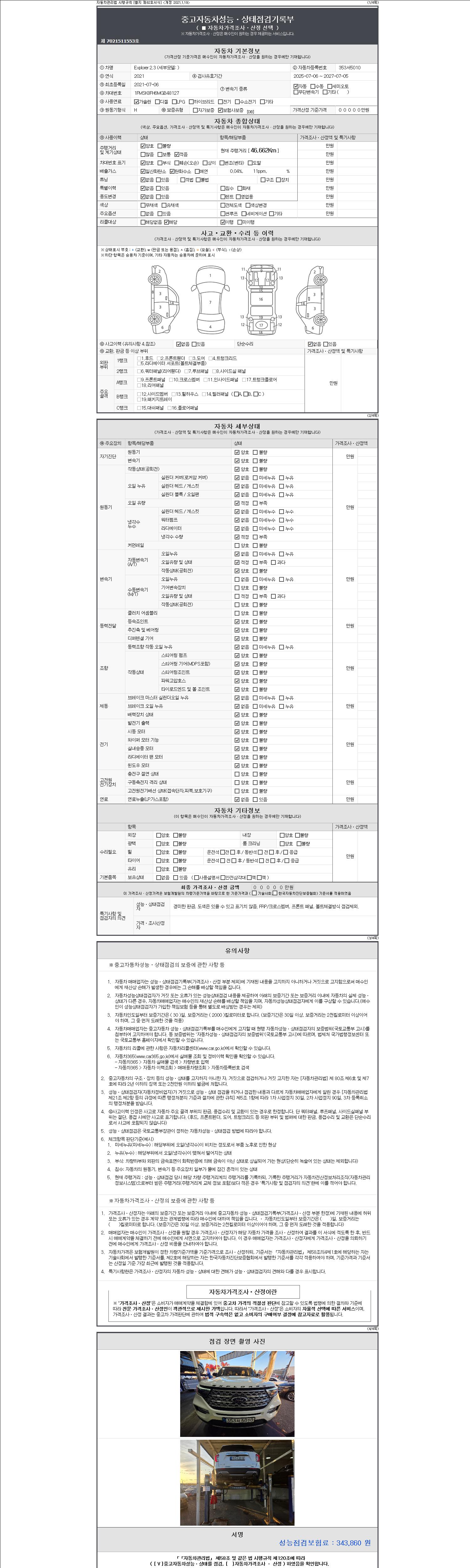 -중고자동차 매매업자를 통해 차량을 구입하실 경우 반드시 "중고자동차 성능, 상태점검 기록부"를 교뷰 받으셔야 하며, 매매업자는 반드시 의무 교부 하여야 압니다.