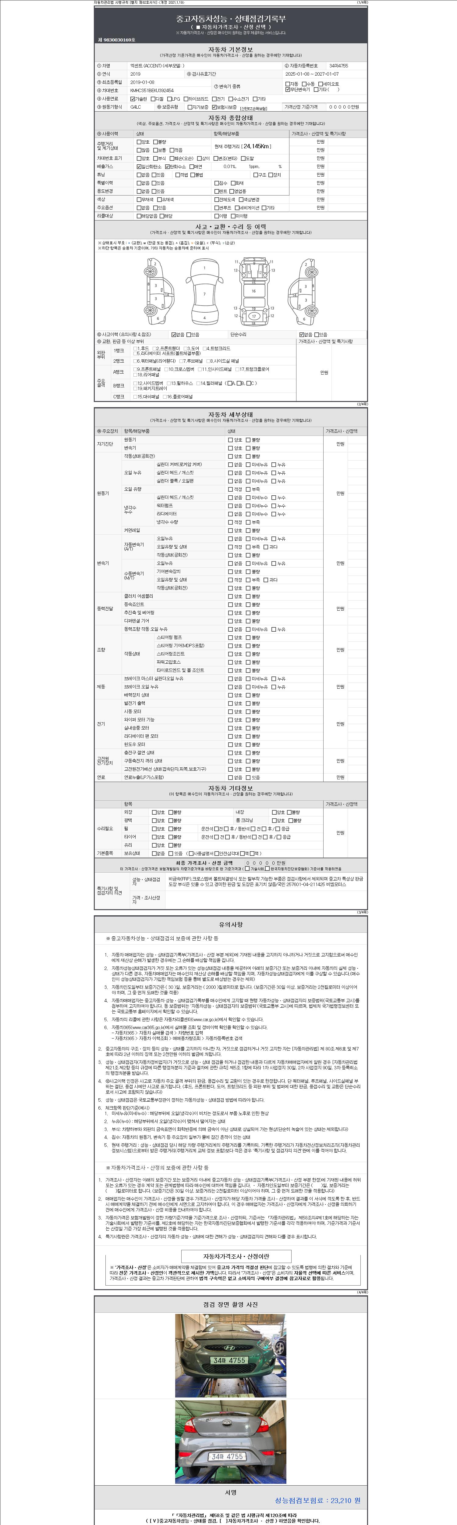 | 주행거리 | 24,145 km | 차량번호 | 34마4755 | 사고유무 | 성능기록부 참조 | 제시번호 | 제 2147483647 호 |