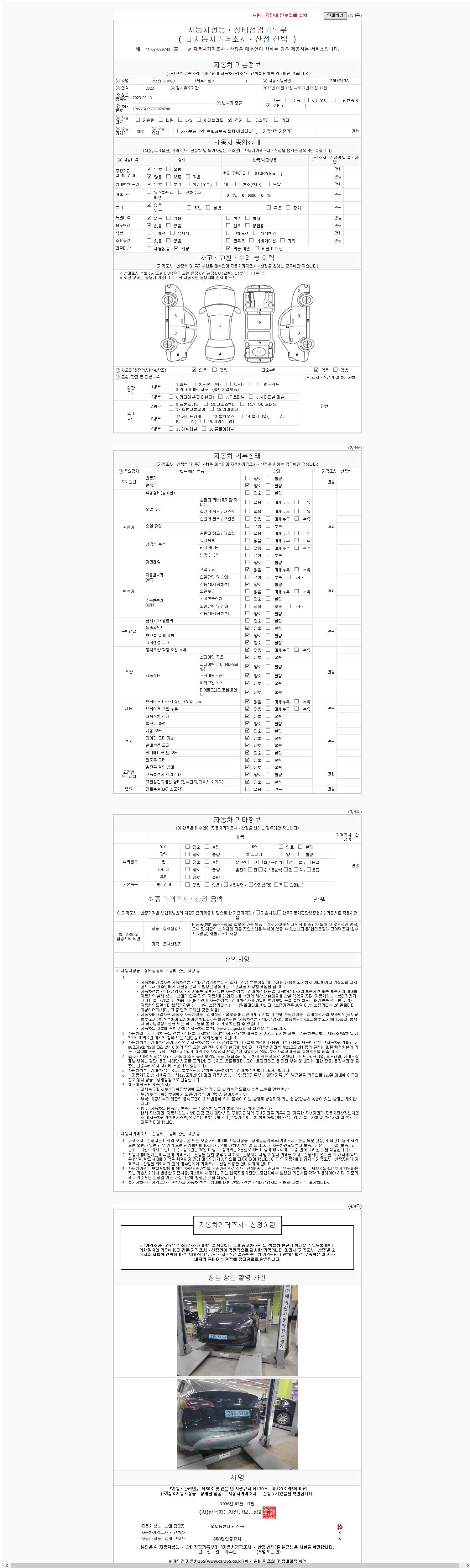 - 2. 차량 등록증이나 성능점검지 등을 상담자에게 요청및 확인하시고 사전에 미리 점검 하시기를 권유드립니다.